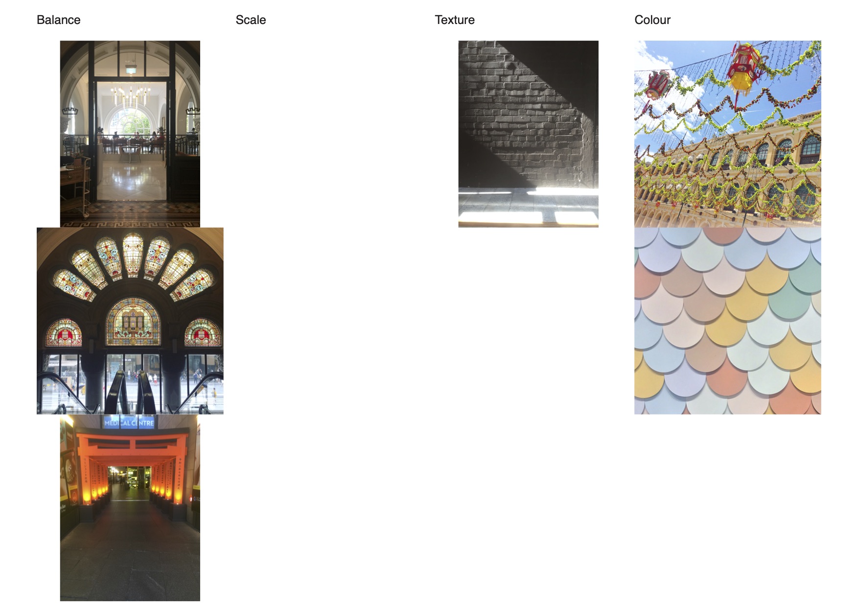 I collected a few photos of random photos that fit into the catergories of elements. so I went out to take random photos of things when I went out exploring in the city.