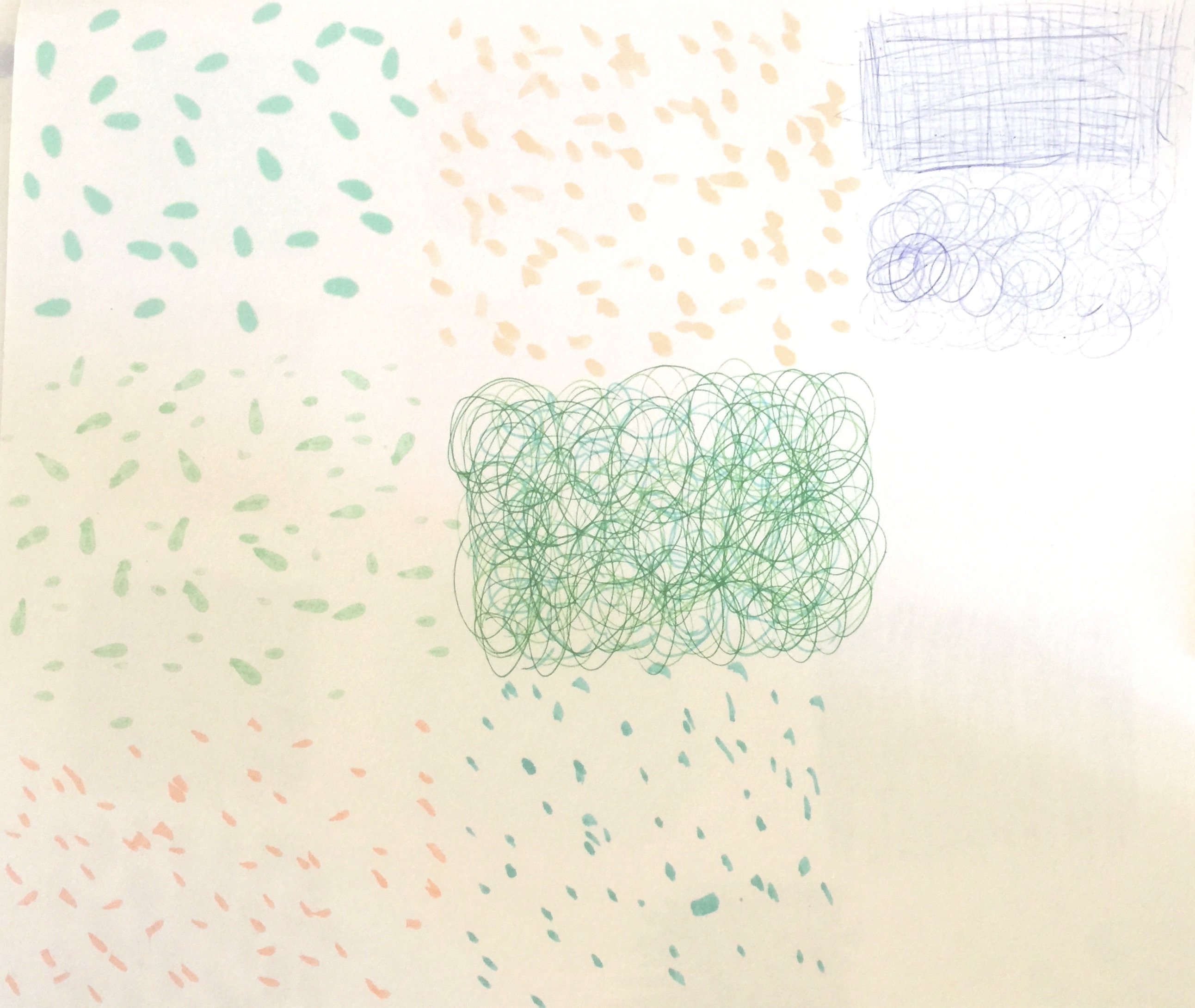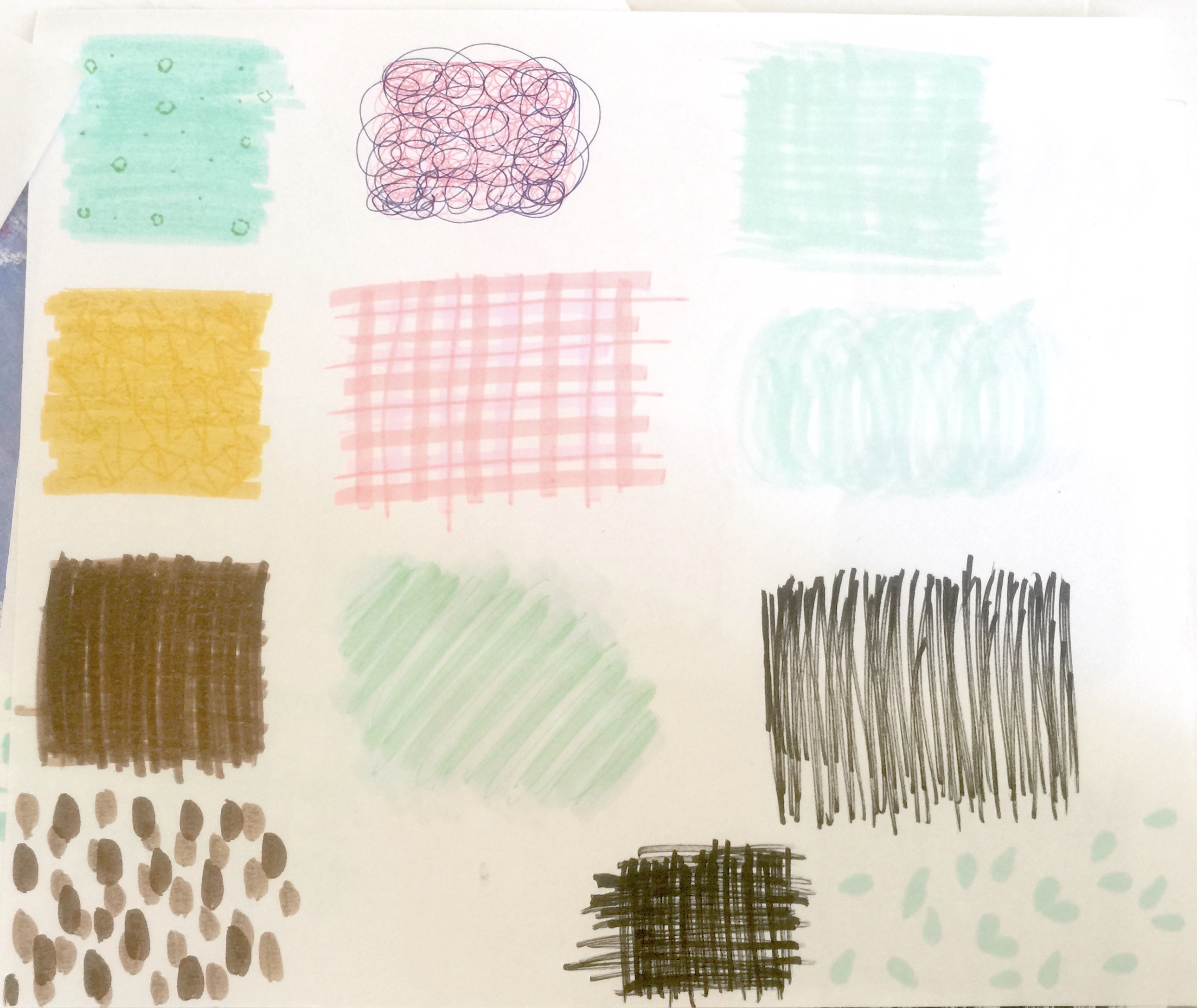 These marks were created in class which were created with just markers at the table and what I have already owned. Marks can be created through fast pace or slow pace depending on the ink the pen or marker has.