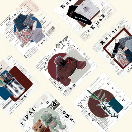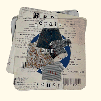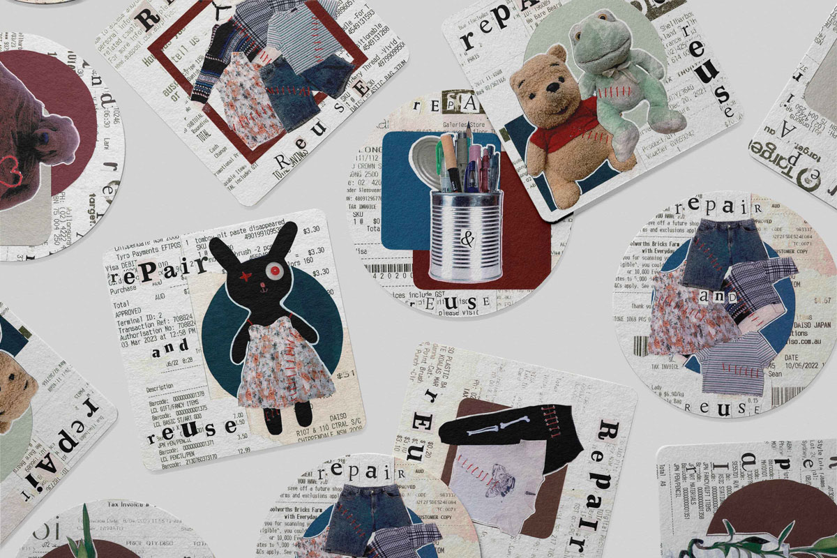A series of collages based on the slogan ‘repair and reuse’. The collages reflect the idea of repairing and reusing our things we love, rather than feeling the need to replace them.